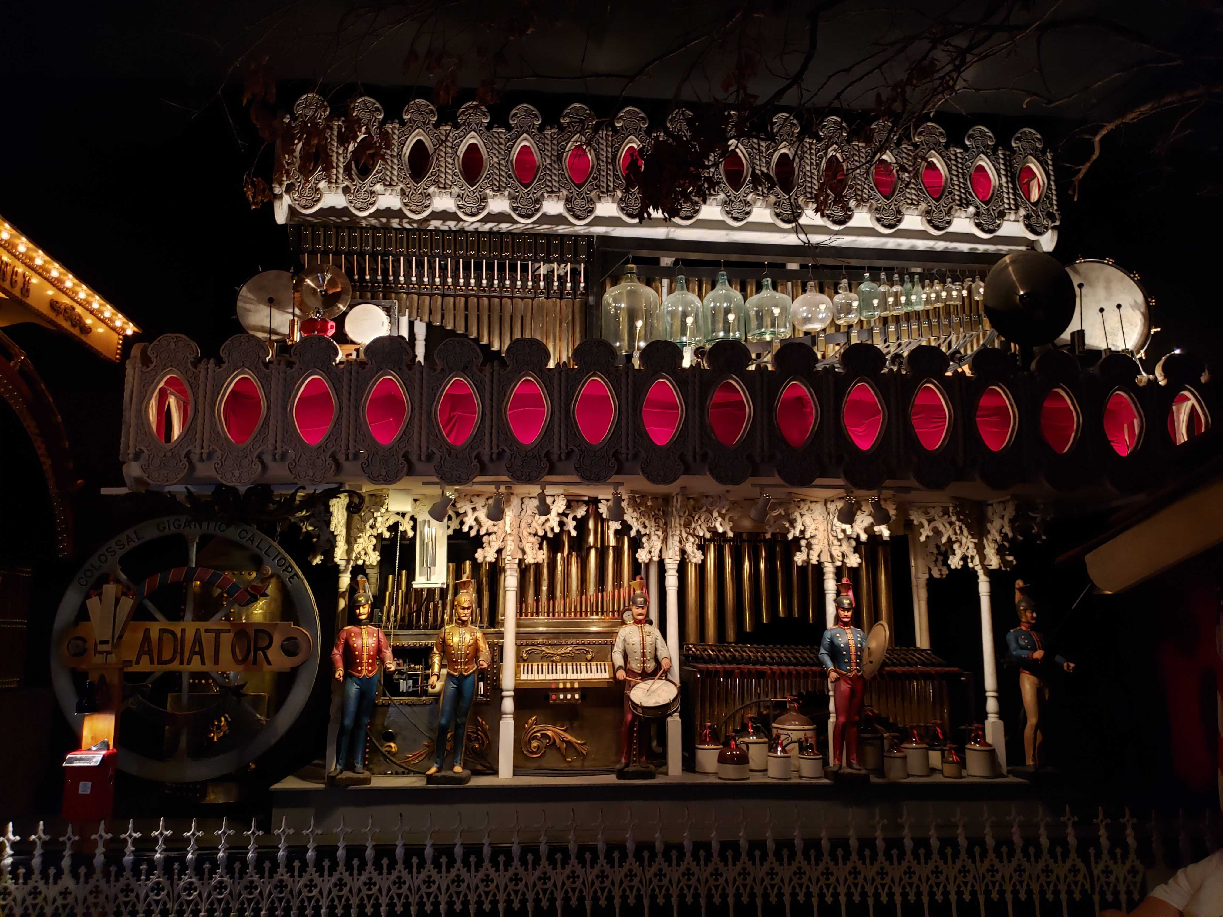After walking through the restaurant, you enter the Music of Yesterday section. This one is filled with the automatic music machines like I mentioned earlier, like automatic pianos, automatic hurdy-gurdys, automatic radio roll players, pneumatic devices that play drums and draw a bow across a violin, etc. You wind your way past room after room and it seems like it goes on forever. Some of these were really, really cool,
