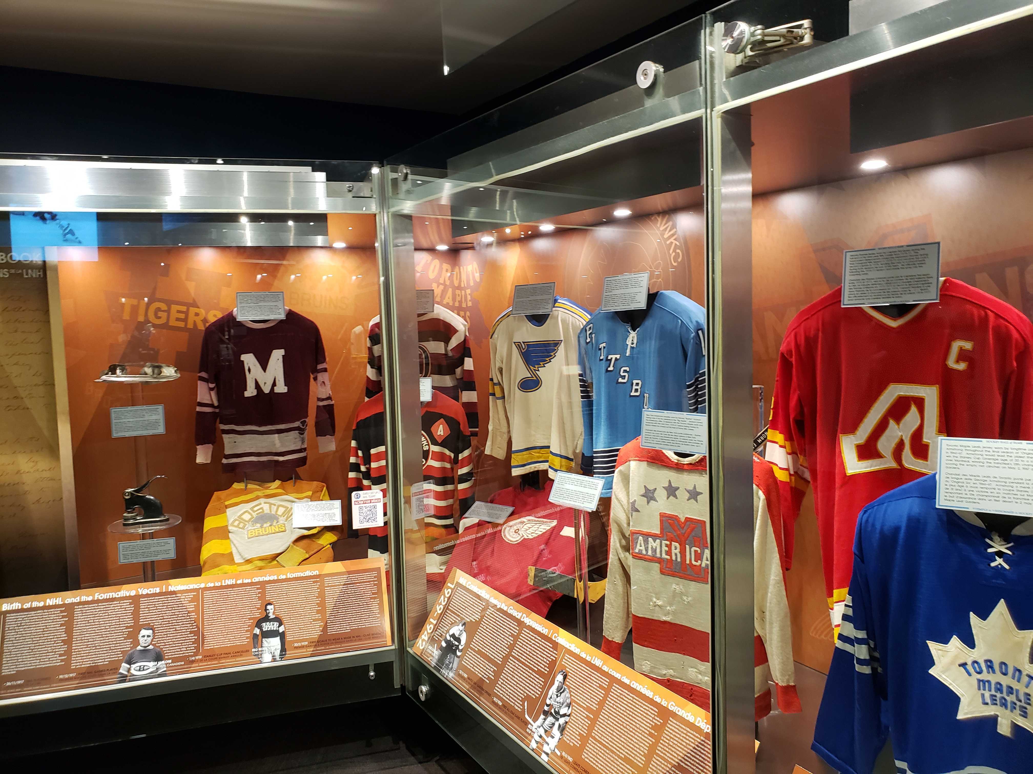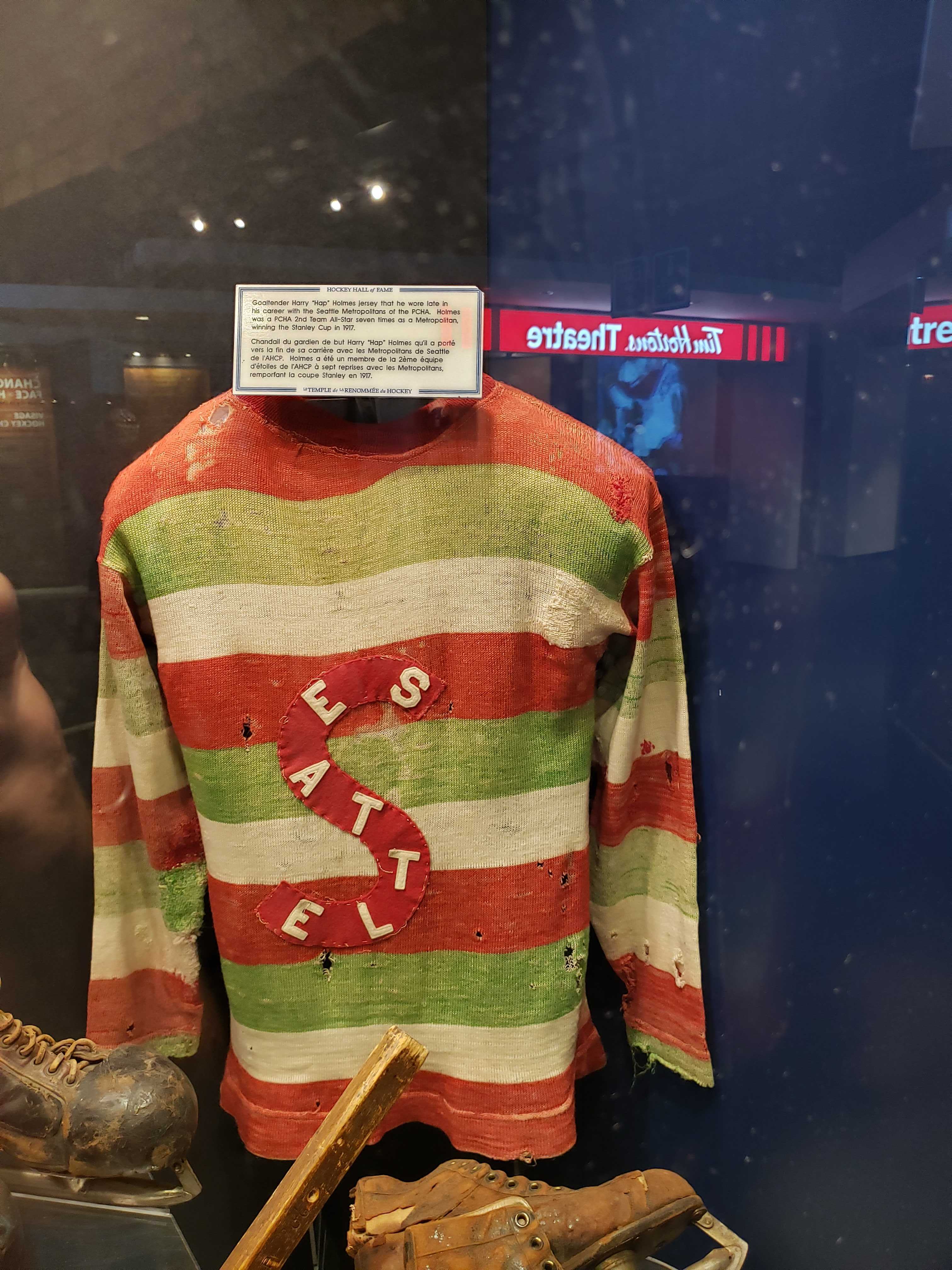 jerseys), ice skates and sticks from the 1920s, and more. They had samples of original seating from the Original Six