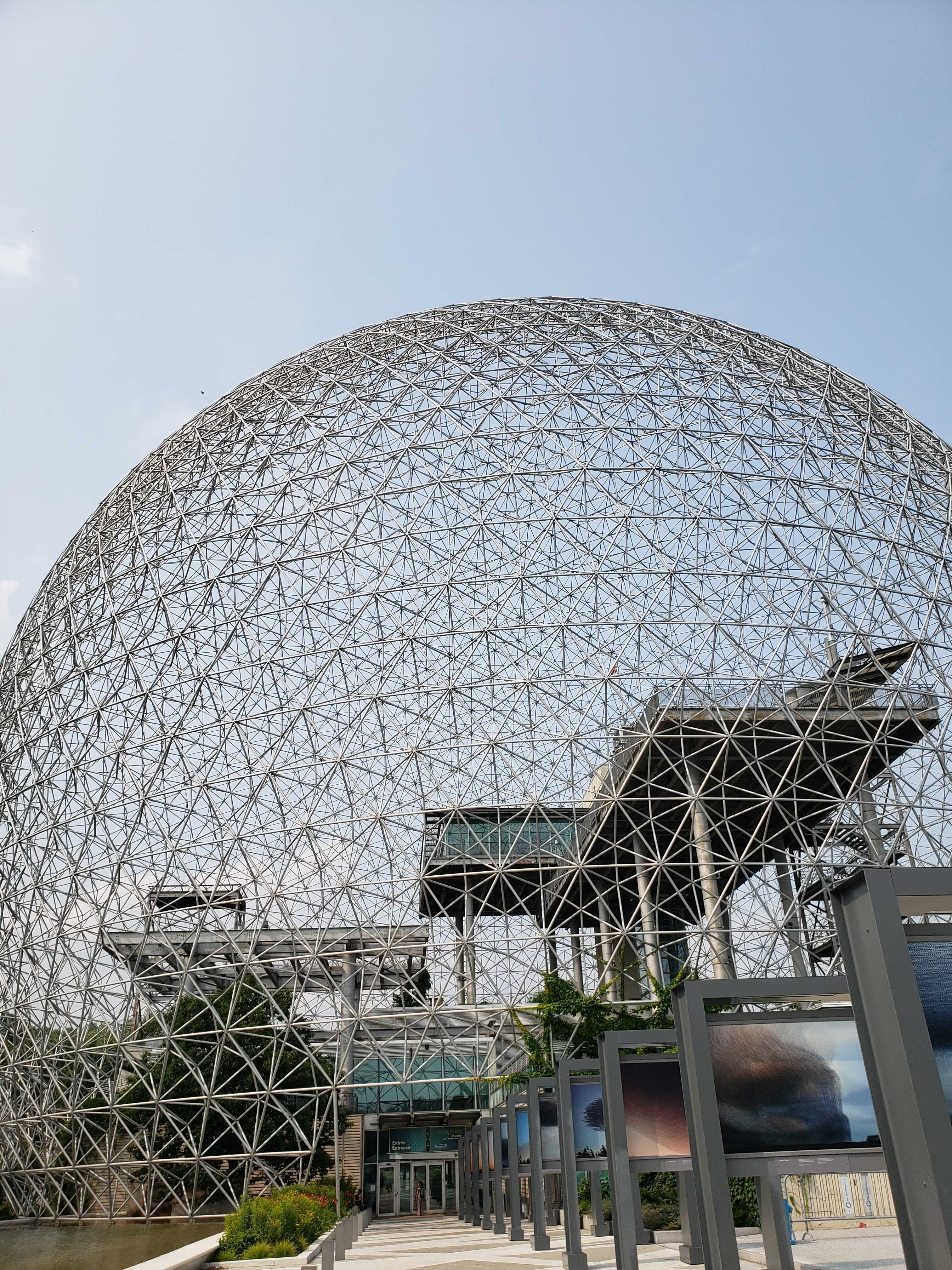 Our trip to Montréal in Québec was relatively uneventful. As soon as we passed into Québec, things definitely felt foreign. In Ontario, all of the government signs were in English and French, but in Québec everythiing is only in French. The drivers were also EXTREMELY aggressive. Everyone was driving 20km/hr or more over the speed limit, cutting people off left and right, and refusing to let anyone over (which is probably why people cut others off so much). They also frequently use a flashing green light on street lights instead of a left turn arrow, so that was a fun little surprise. Our first destination was the Biosphere Environmental Museum, which looked like a massive dome made out of metal. It definitely made me think of the hit 1996 film starring Pauly Shore, Bio-Dome.