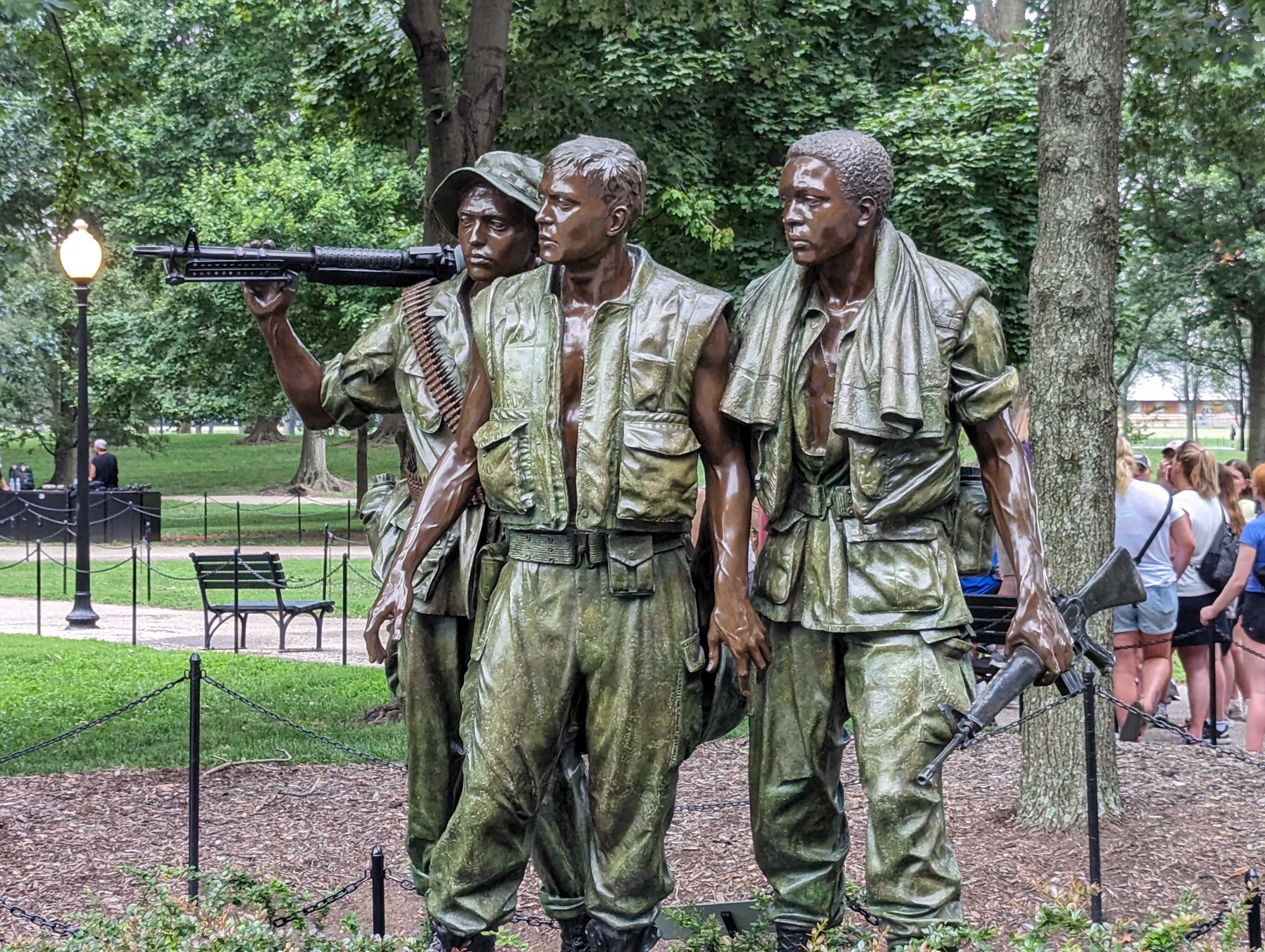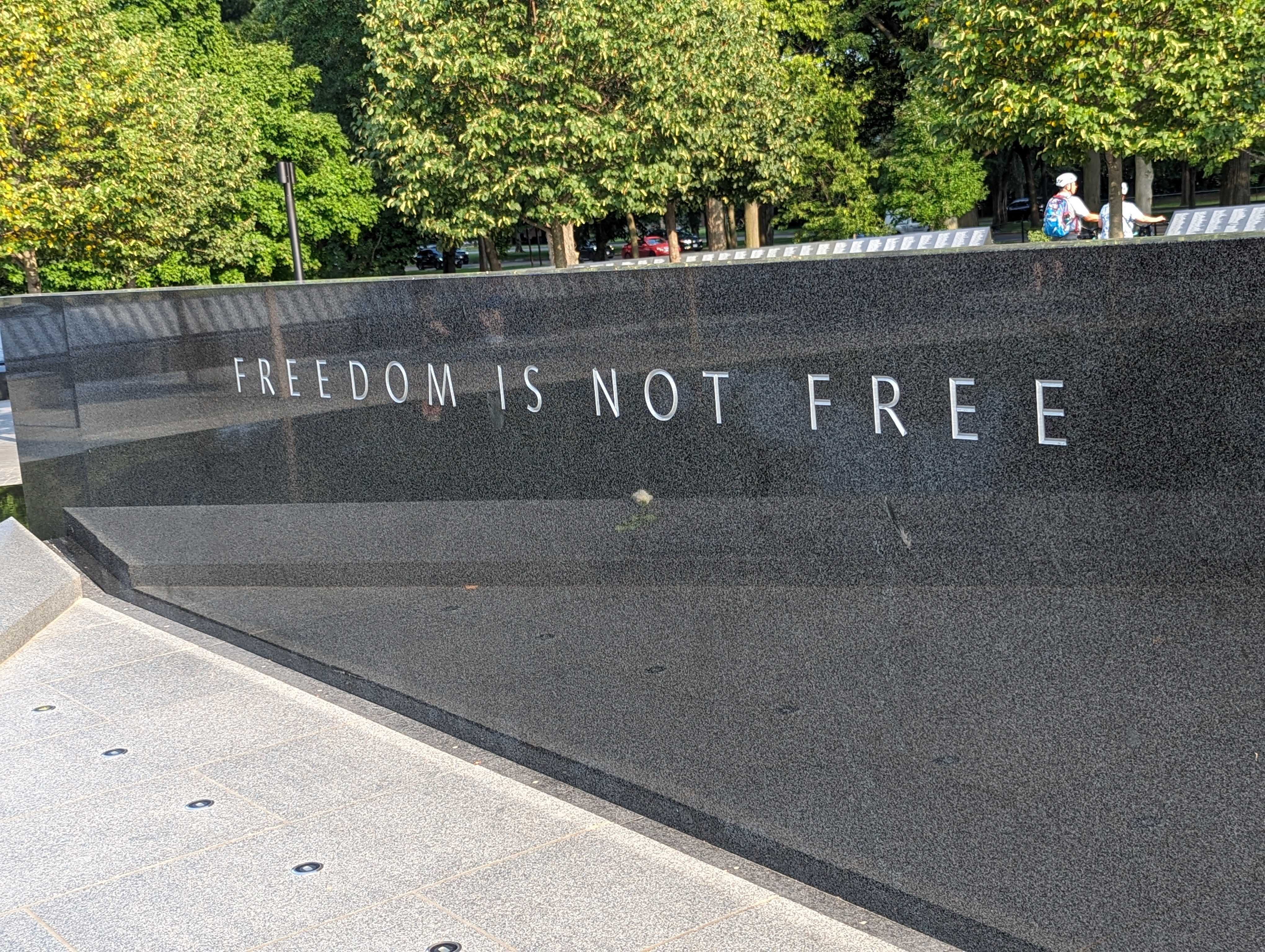 We hopped back on the DC Circulator (a whopping $5 for each ride for our whole crew) and rode it about a mile up the road to the Martin Luther King, Jr. memorial. We stayed there for a few minutes before walking across the road and down a bit to the Korean War Memorial where some large event had just ended. There were news crews and lots of uniformed veterans leaving flowers in various places on the memorial