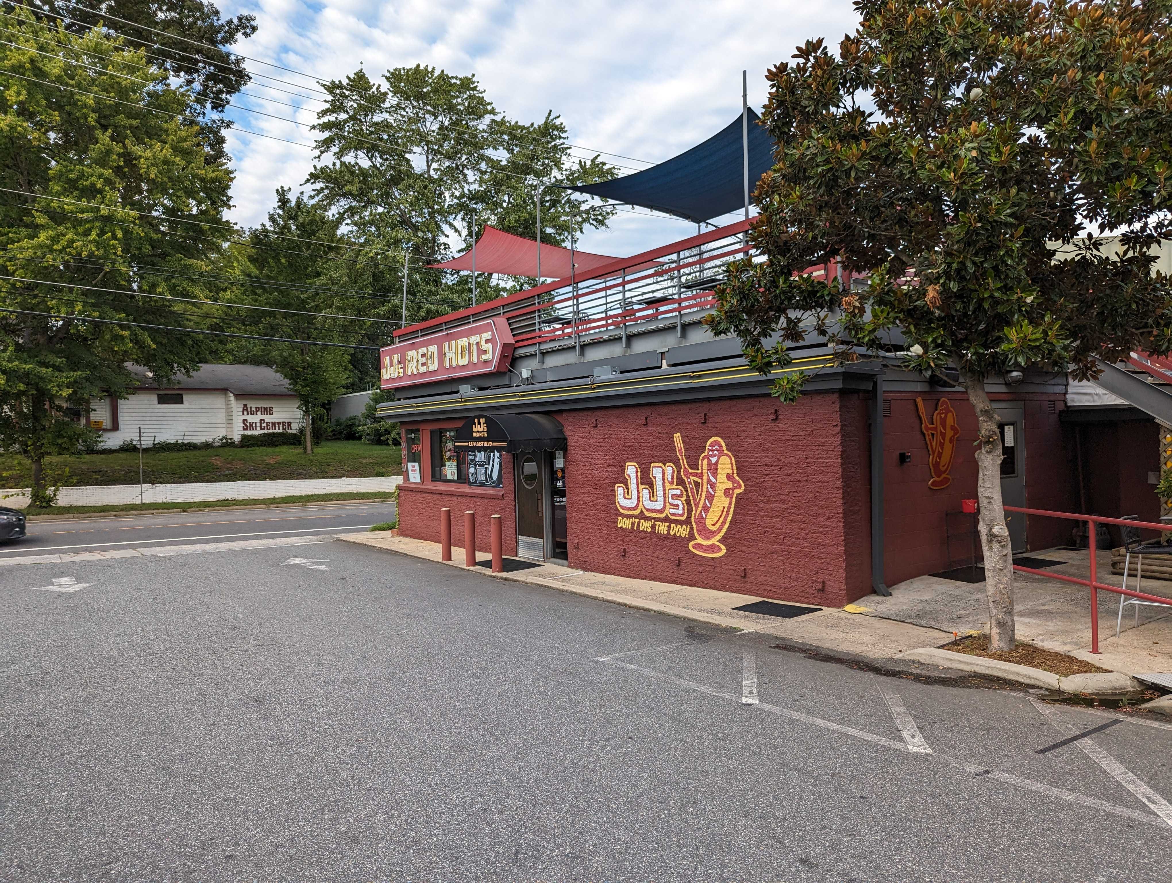 We made it into town at about 6pm, so we swung by a (really) small park called The Green, because it has a fun little signpost listing the directions and distance to other cities in the world named Charlotte and some other fun little statues nearby. Our last stop today (other than our hotel) was at a local diner called JJ's Red Hots. I did a little research coming into this place about a fun little dinner spot and we settled on this one. It's primarily a hot dog place but they also sell chicken tenders and chicken sandwiches. My favorite thing about this place is all the toppings - almost limitless combinations! They have a few different "specialties", but you can also build your own and put anything you want on it - bacon, mushrooms, onions, pineapple, tons of sauces, etc. I got the Dog of the Week (the Big Kahuna) and the Quarter Hounder along with some onion rings. Lots of food, very tasty, and everyone was happy. We even bought a shirt! Highly recommended.