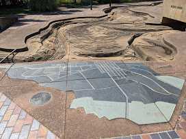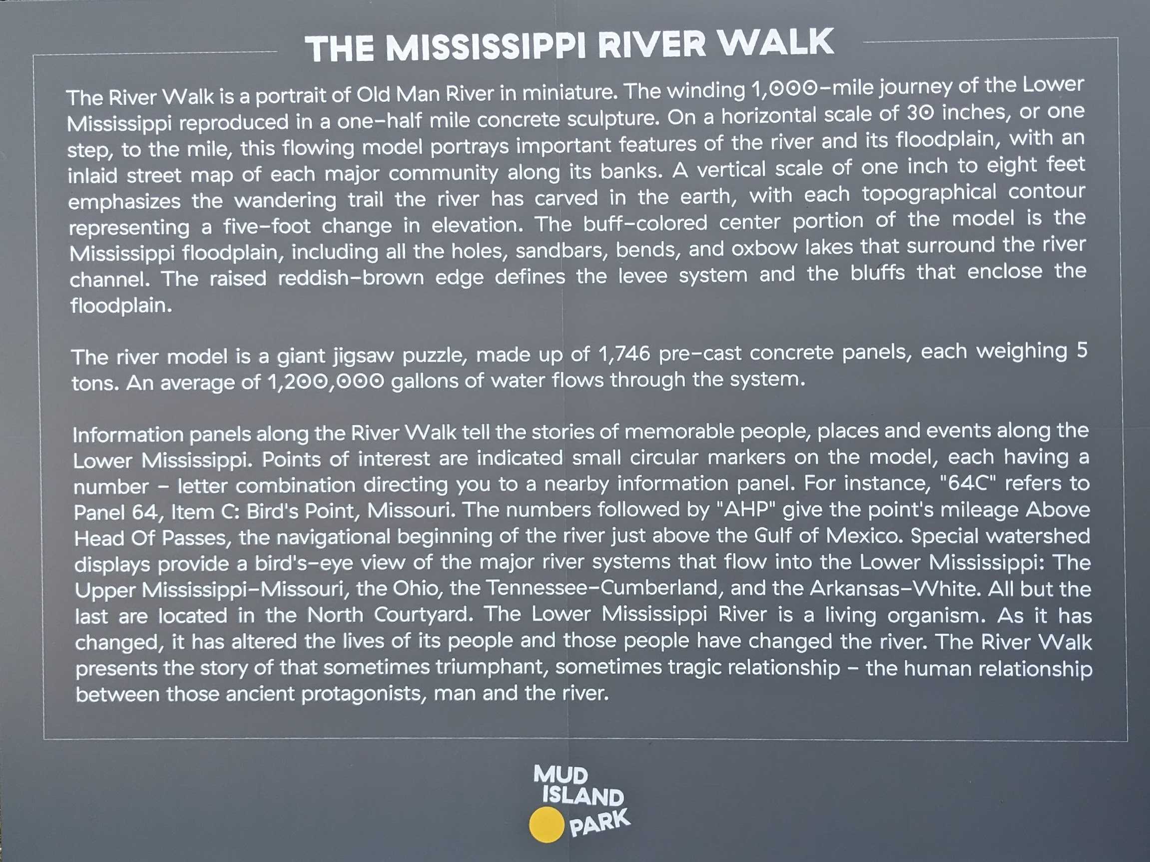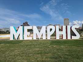 Our next stop was Mud Island, which is honestly a terrible name for it - there was no mud, and it's not an island. But we persevered anyway! We went the "wrong way" around an amphitheatre and made a bee-line for the giant colorful MEMPHIS sign. The sun was out from its clouds and our walk was quite warm. After a few pictures, we stood under the shade of a building for a few minutes before setting off further. Another cool feature of Mud Island is the Mississippi River Walk. It's a scale model of the lower 1,000 miles of the Mississippi River until it meets the ocean. I'm assuming it's way cooler when there's water in it, but it was still pretty cool seeing the topology of the riverbed and the flood plains. There were also markers for every city along the river.