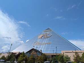 We piled our sweat-drenched selves into the van, cranked the air conditioning to full blast, and then drove back to the mainland. One of the focal points when we walked across the Big River Crossing was a giant pyramid, and that's where we went next: a giant Bass Pro Shop. For those of you who know me, you may be surprised to hear that I've never been in a Bass Pro Shop. I know I seem like the outdoorsy hunting type, but I'm actually not. Shocking, I know. Anyway, this wasn't what I had expected at all. Walking up to the giant pyramid, we were greeted with valet parking. Apparently there's also a hotel in here, because who wouldn't want to stay in a giant store. Walking in, it honestly felt like the entire building belonged in Las Vegas as one of those themed hotels. We saw alligators, birds, ducks (I know, they're birds too), and 20 different kinds of fish.