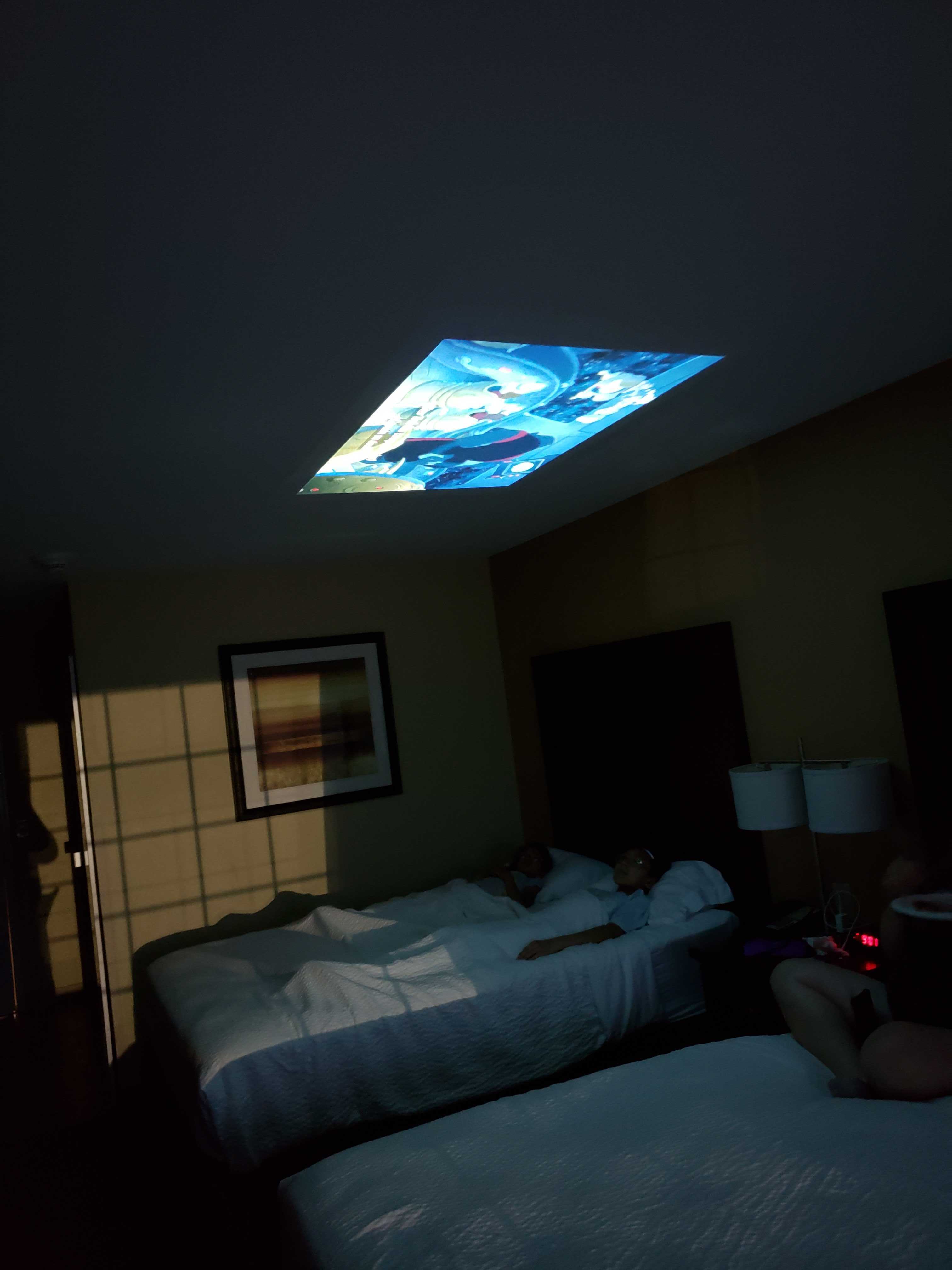 had dinner and got everyone ready for bed, we climbed into bed and watched a movie on the ceiling of our hotel room. A